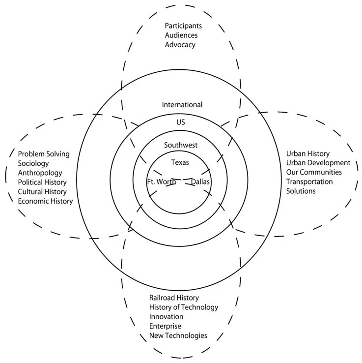 Utilizing its existing relationships with Texas Woman’s University and Southern Methodist University as a starting point, MAR wishes to share its resources with scholars, historians, and college students. The goal is to develop a new vision of education about the relationship between the railroads, the West and the founding of Dallas and Fort Worth as well as other Texas cities. This will be accomplished in conjunction with strategic partnerships with existing local educational institutions. MAR will also show how the relation of the urban development patterns for these areas were formed by the railroads. This program may be done in collaboration with a local college or university urban planning department.